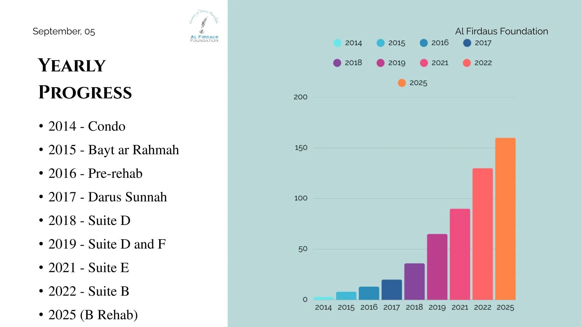 We began with a burning desire to teach the deen of Allah in a small condo, welcoming just four students to learn the Quran; that intimate setting was filled with earnest recitation, patient guidance, and a deep commitment to nurturing faith. As word spread and trust grew, enrollment gradually increased, prompting a move to a larger facility where we could expand classes and resources. Today, that initial spark has grown into a full-fledged school serving over 150 students with multiple programs—Quranic memorization, tajweed, Islamic studies, and youth development—continuing our original mission to educate hearts and minds in the deen.